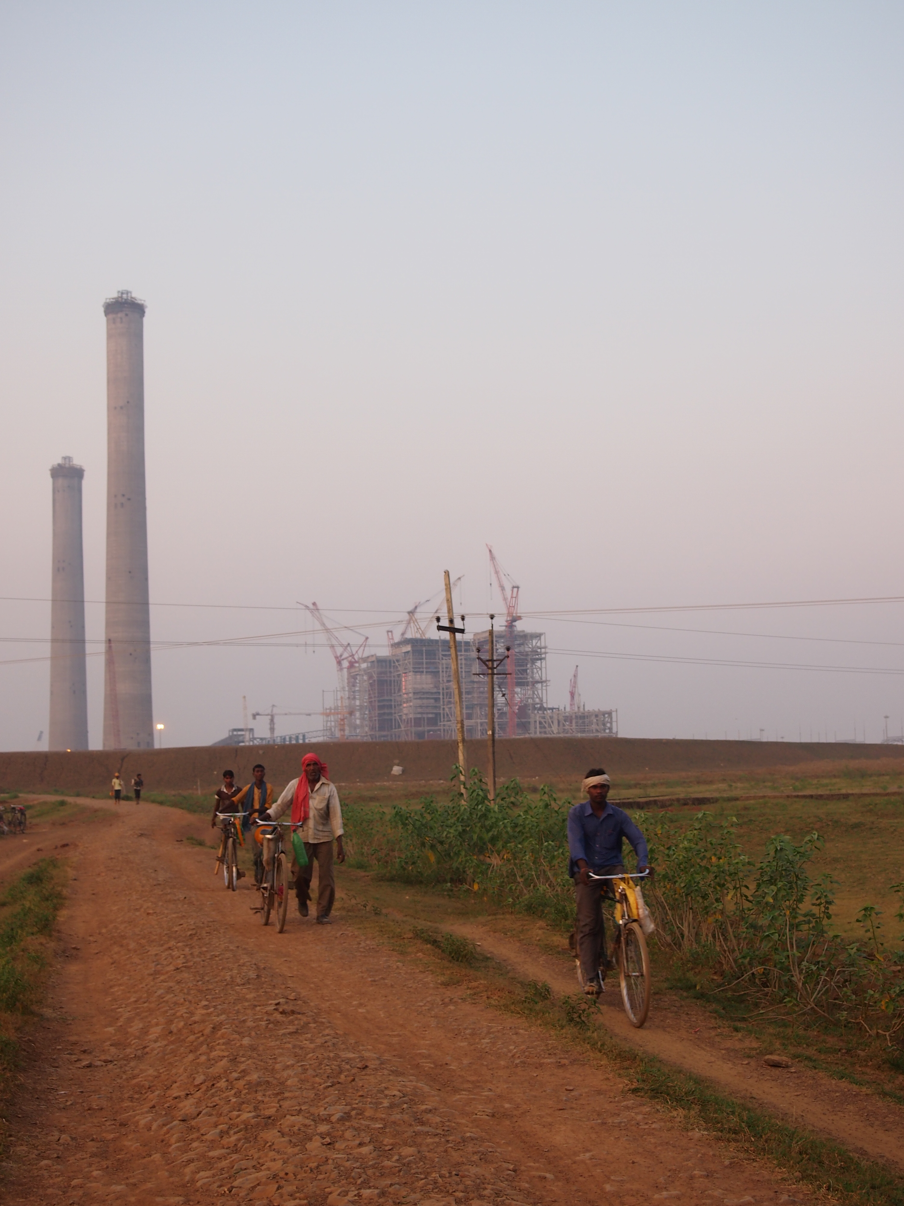 another powerplant, this one in janjgir champa district, chhattisgarh. villagers walking home after a day spent working as construction labour.and more…these farmers had transited from a pastoral life to one of construction labour. when i spoke to them, they spoke bitterly about how their grazing grounds had been taken away by the govt. there was another theme running through all this, though. work on this plant has all but stopped. with some companies getting captive blocks while others did not, the market for power generation is so skewed now that a bunch of power projects are lying incomplete. why throw good money after bad?another village, again in janjgir champa. here, a powerplant company had bought some land and construction had not started. here, a villager looks at this outsider suspiciously. maybe he thought i was there to buy up land in his village.companies buying land but not setting anything up had its own kind of collateral damage. farmers like dayaram banzaari had sold some of their land after the broker promised his son a job at the factory. now, he says, the land is gone, there is no plant and there is no job.hasdeo arand. over which the go/no go debate over mining in forests erupted. i look back at this and feel the environment lost this fight on all counts.the site of pathriya dand coal blockwhat a coal block looked like before it became onewhile travelling through hasdeo arand, hoping it would give me a better sense of what was at stake in the coalgate debate, i ran into this travelling salesman and his team. they move with their wares from village to village in this area.his team. much, much later, as i update these photos. i again wonder what will happen to them all – people leading their lives unaware of possible upheavals.taken while standing in the forest. look at the bark of this tree. so much like the scales of a croc or an alligator.life in hasdeo arand.and life in nearby korba. a farmer bathes his buffaloes in the ash-laden runoff from a powerplant. that is what all this comes down to, doesn’t it? people used to a particular life. continuing with it as long as they can –perhaps because old habits die hard, perhaps because of choicelessness. and then, if things get untenable, they get cast out to cope the best they can. working as labour in nearby towns, or whatever. at one time, fiction and journalism and cinema captured these realities well. one case in point, this hindi film called gaman. today, these tales are not getting told.surrounded by coal mines and powerplants, korba is one of the most polluted towns in india. here, a bustling market next to a thermal power plant.awaiting the six am train from korba to raipur. (an update from almost two years later: the trip ended after some more meetings in raipur. i returned to delhi, wrote two large stories, one on the links between coalgate and the thermal projects, another on the links between coalgate, land and forests. much, much later, there was a better story on the links between coal and land. and then, the coalblock allocation was cancelled by the SC. by then, in some parts of hasdeo, mining had already started. at this time, circa october 2014, i don’t know what lies in store for hasdeo.