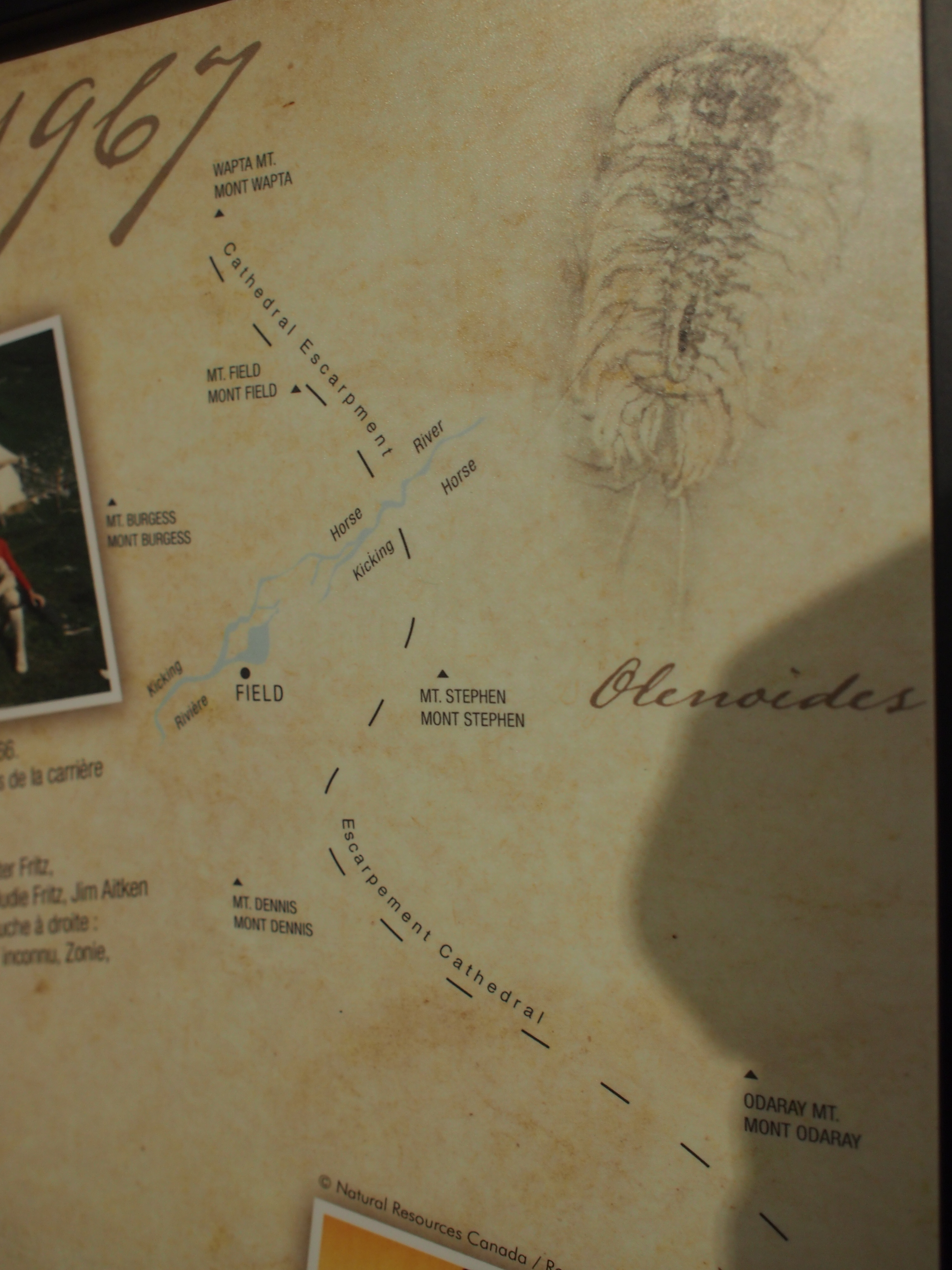 that daze returned during the trek to mount stephen. after tadoussac and quebec, i had headed to field. a small village about 200-250 kilometres to the west of calgary. field lies between two mountains familiar to anyone who has read about trilobites — mount stephen and mount wapta. the first is where trilobites were first found in the modern age — by workers building the trans-canadian railway. the second is where charles walcott found the burgess shale fauna, a hitherto unknown site containing many more cambrian lifeforms, some very well-preserved indeed.
