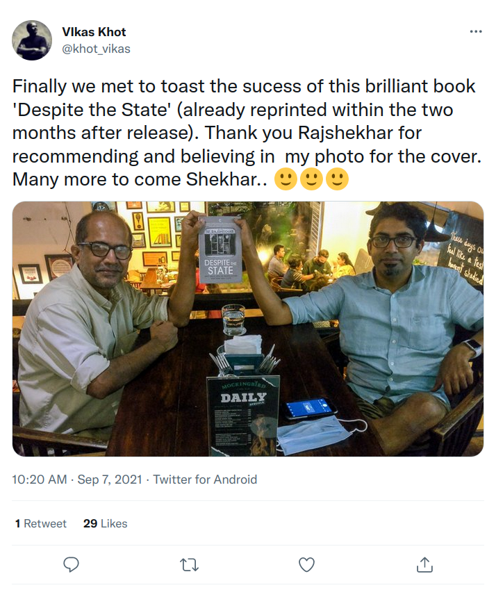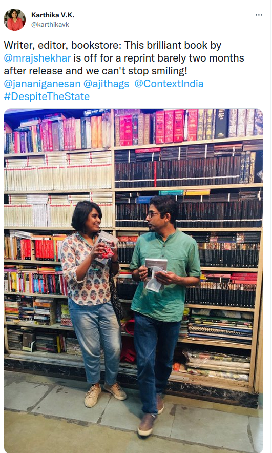 I am still with Westland — the team moved to Pratilipi, India’s biggest self-publishing platform (2 crore readers). I am curious about what lies ahead. Most of Pratilipi’s readers read on their smartphones. And so, in addition to publishing Despite the State as paperback and ebook, Pratilipi will also serialise it for english readers (for a start). This is something new — it takes me back to how Sherlock Holmes gained popularity, through stories published as instalments in periodicals — and leaves me wondering how the book will fare.